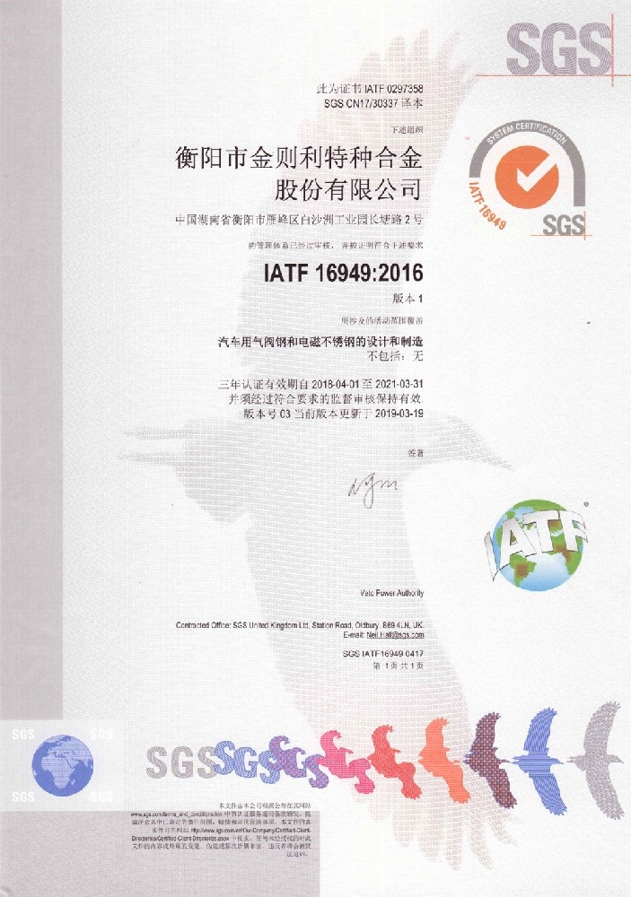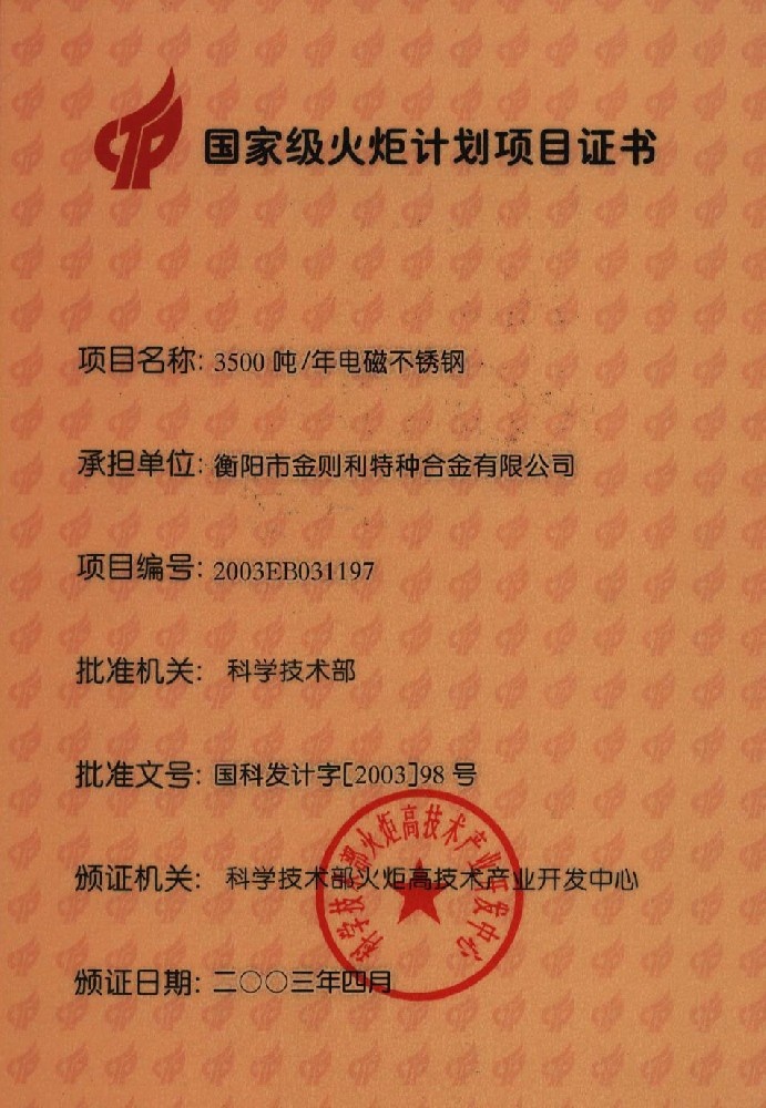衡陽市金則利特種合金股份有限公司成立于一九九九年十二月,注冊資本人民幣兩千兩百萬元。注冊地址:衡陽市雁峰區白沙洲工業園長塘路2號。公司主營耐蝕軟磁合金,為湖南省高新技術企業。公司自成立以來,即致力于耐蝕軟磁合金的研發。 研制出的JL-31(00Cr13si2Pb)、JL-31B(00Cr13si2)、JL-31BS(00Cr13Si2S)、JL-37B(0Cr17Si2)、JL-37(0Cr17···